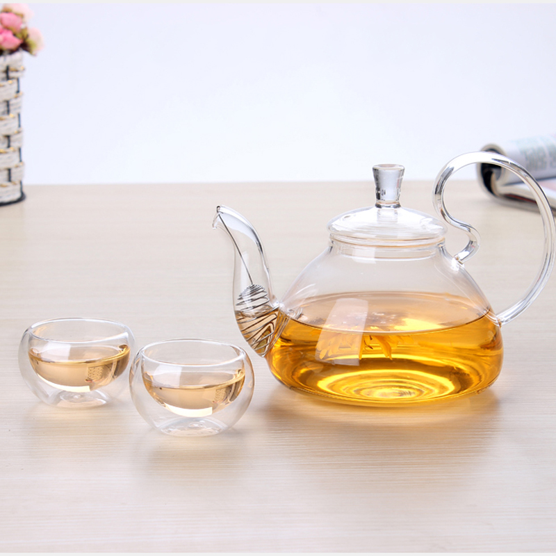 - 01 ấm trà thủy tinh dung tích 600ml lõi lọc lò xo, quai uốn cách điệu